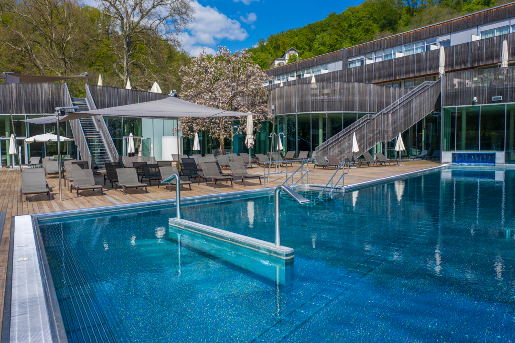 Die Therme der Ruhe verzaubert Sie entlang des „Pfad des Lebens“ in eine Welt der Ruhe und Erholung. Das Thermalwasser-Innenbecken und das Thermalwasser-Außenbecken sind zentrale Ankerpunkte für Ihre Gesundheit. Schwimmen Sie mitten im 20 Hektar großen Curpark und inhalieren Sie die gesunde Luft, die dieser spendet.